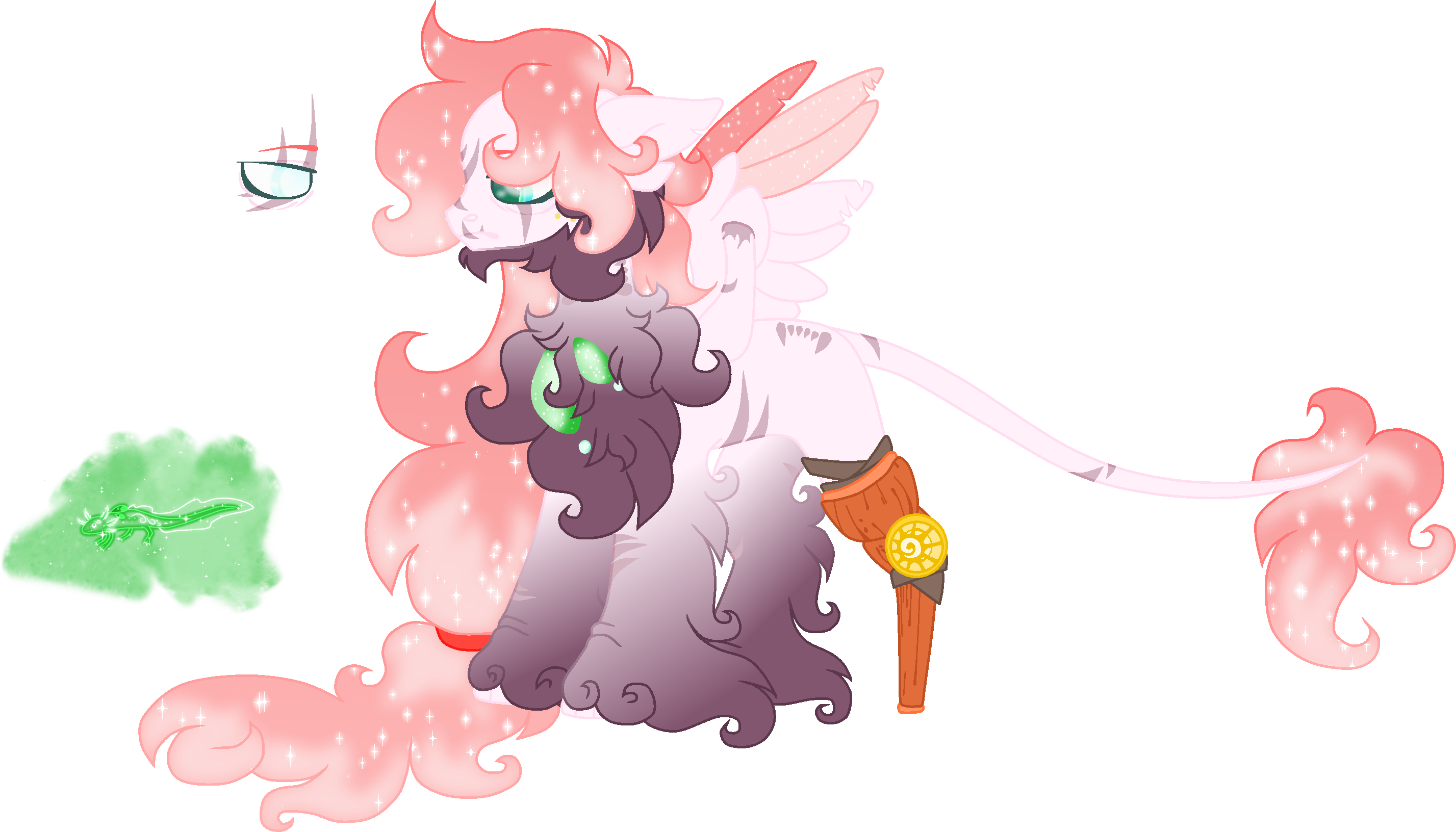Bio: Raspberry is a retired warrior griffix after he encountered a fatal accident, which cost him his eyes and leg. He was on patrol one evening when a timberwolf attacked his squad, the timberwolf injured many of the warriors there, but Raspberry had been the first in its sight, leaving him almost dead. His sphirix represents his will to live, being able to regenerate itself, and cure him of small bruises/diseases/cuts. He is a great family man and loves his husband and daughter.